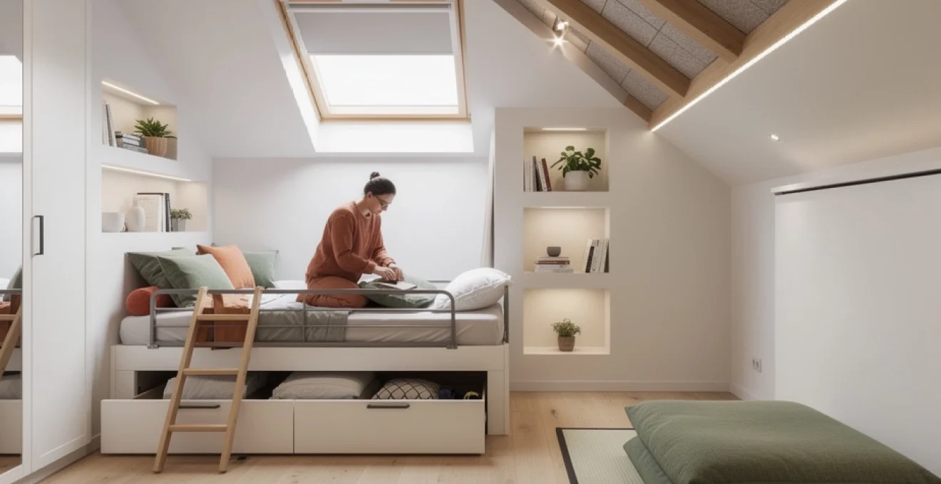 Cette approche rappelle le principe d’un couteau suisse : un même volume sert à plusieurs usages selon le moment de la journée. Côté confort, les futons modernes offrent un bon maintien grâce à leurs couches de coton ou de latex, à condition de choisir une épaisseur suffisante pour un usage quotidien. Pour un aménagement esthétique, associez ce couchage à des teintes naturelles (lin, bois clair, fibres végétales) et à des rangements bas sous rampants, afin de conserver une ligne d’horizon dégagée. Le futon est particulièrement pertinent pour les amateurs de style épuré, qui souhaitent une chambre mansardée à l’ambiance zen.