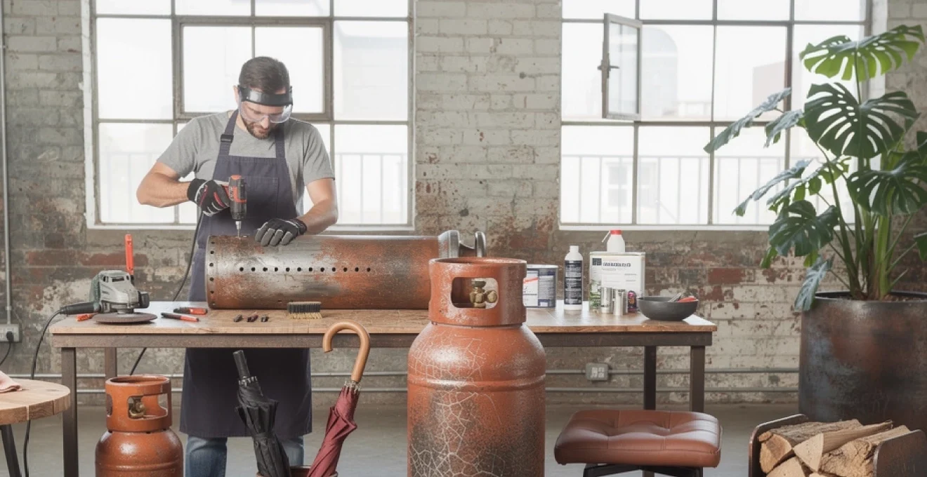 Les bouteilles de gaz propane et butane, ces cylindres métalliques disgracieux qui encombrent nos jardins et terrasses, recèlent un potentiel décoratif insoupçonné. Avec l’essor du mouvement upcycling et la sensibilité croissante à l’économie circulaire, ces contenants industriels deviennent des supports privilégiés pour créer du mobilier design et des accessoires décoratifs uniques. Transformer une bouteille de gaz vide en élément de décoration demande certes quelques précautions techniques, mais le résultat final justifie amplement l’investissement en temps et en créativité. Les bouteilles Butagaz, Primagaz ou Antargaz offrent une toile métallique robuste, parfaitement adaptée aux transformations les plus audacieuses, du luminaire industriel au cache-pot XXL. Cette pratique s’inscrit pleinement dans les tendances déco 2024, où authenticité, durabilité et personnalisation dominent les intérieurs contemporains.